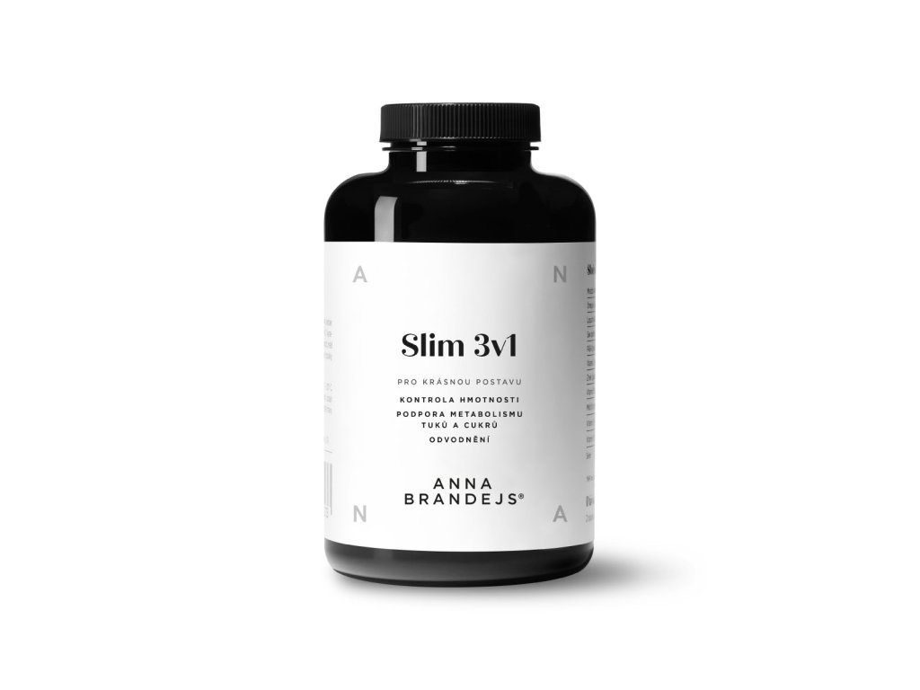 Značka ANNA BRANDEJS vyvinula výživový doplnok, ktorý môže prispieť k vašim snahám o kontrolu telesnej hmotnosti a k chudnutiu. Hlavnou zložkou doplnku stravy Slim 3v1 1 je extrakt zo semien rastliny Senovky gréckej – grécke seno, ktorý je štandardizovaný na 85 % rozpustnej vlákniny galactomannan. Táto vláknina je vhodná pri redukčnej diéte, pretože do seba nasaje veľké množstvo vody a takto bez veľkej zmeny prechádza tráviacim traktom. Tým prispieva k väčšiemu pocitu sýtosti. Slúži aj ako palivo pre črevnú mikrobiotu, a preto funguje ako prebiotikum. Prebiotiká sú látky, ktoré sa nevstrebávajú a vytvárajú v hrubom čreve vhodné prostredie pre existenciu zdraviu prospešných baktérií. Navyše má nízku kalorickú hodnotu. Ďalšou zložkou je extrakt z morskej riasy (Ascophyllum nodosum), ktorý pomáha pri kontrole telesnej hmotnosti, metabolizme tukov a prispieva k normálnej funkcii črevného traktu. Extrakty z bazy čiernej a čiernych ríbezlí prispievajú k vylučovaniu prebytočnej vody z organizmu. Baza čierna obsahuje mnoho priaznivých látok pre celý organizmus zvaných flavonoidy, napríklad kvercetín a rutín. Rutín priaznivo ovplyvňuje pružnosť krvných ciev, kvercetín ako silný antioxidant chráni bunky v tele pred poškodením voľnými radikálmi. Čierne ríbezle pomáhajú vylučovať nadbytočnú vodu z organizmu, navyše obsahujú veľa antioxidantov a prispievajú ku kontrole telesnej hmotnosti. Môžu pomáhať aj pri strese a námahe.