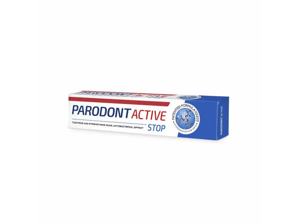 Správné udržování ústní hygieny je klíčem v boji proti nepříjemnému dechu i proti dalším nepříjemnostem. Ústní hygiena je velmi důležitá a je třeba na ni dbát již od útlého dětství. Máte potíže se zanícenými dásněmi? Právě Zubní pasta Stop Parodont Active je pro vás to správné řešení. Patentovaný systém proti paradentóze: přispívají k regeneraci dásní díky obsažené kyselině hyaluronové, potlačují krvácení, napínají a zklidňují zanícené dásně. Obsahuje aktivní složky: Kyselina hyaluronová, chorhexidin, laktát hlinitý a taurin.