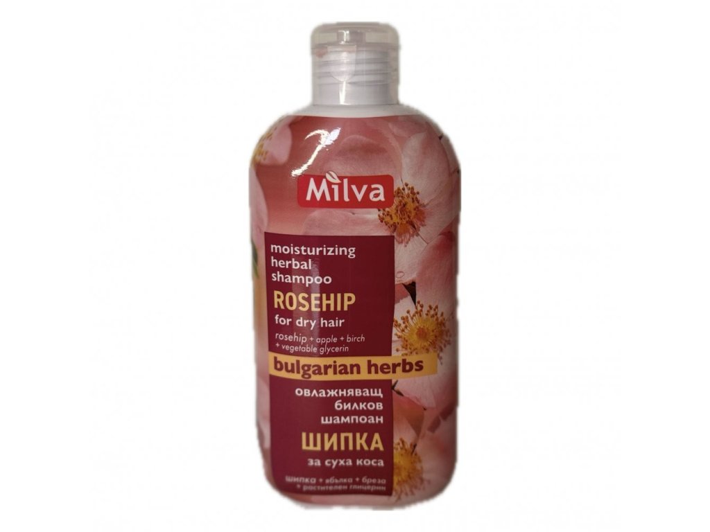 obsahuje šípkový olej ktorý je silný prostriedok na upevnenie korienkov vlasov. Šampón je vhodný na suché vlasy, ktorým vráti stratenú vlhkosť a lesk.