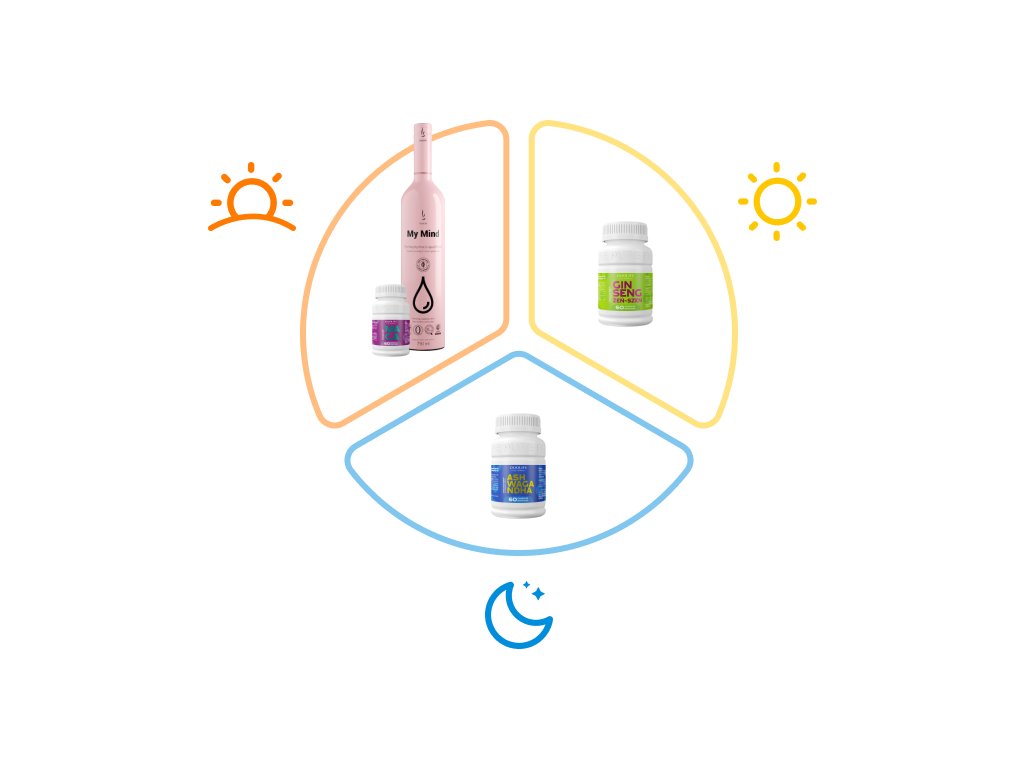 - DUOLIFE Ashwagandha – 2 kapsuly počas jedla.