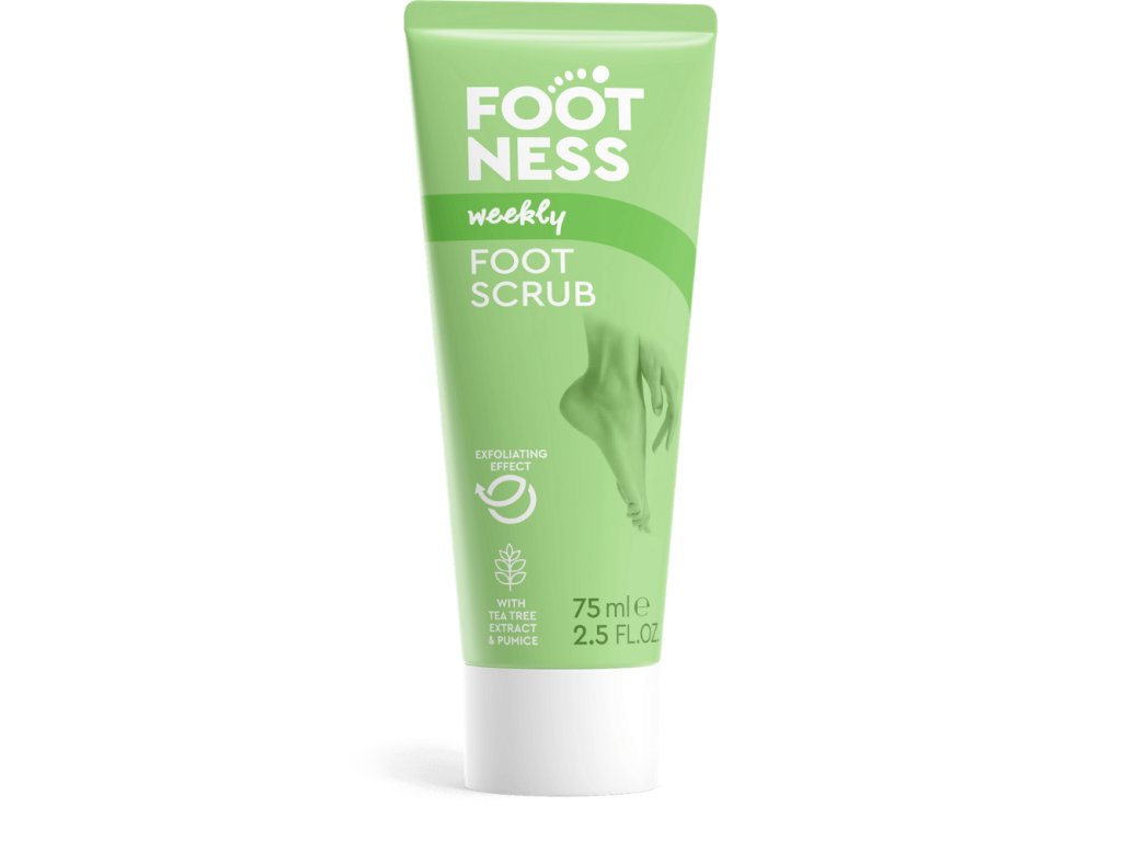 Představujeme vám unikátní péči o vaše namáhaná a suchá chodidla. Peeling Footness na nohy jemně čistí, vyhlazuje a revitalizuje zrohovatělou kůži chodidel a pet. Nejenže odstraňuje ztvrdlou kůži a odumřelé buňky, ale díky extraktu z tea tree přinavrací vašim nohám intenzivní pocit svěžesti. Pemzové částečky a kyselina mléčná hrají důležitou roli během celého čistícího a regeneračního procesu. Obsahuje kreatin, který se ukládá kolem buněk pokožky, čímž ji chrání před vnějšími škodlivými vlivy a udržuje ji tak zdravější. Pantenol dodává pokožce vlhkost a zároveň napomáhá, aby zůstala v pokožce déle vázána.