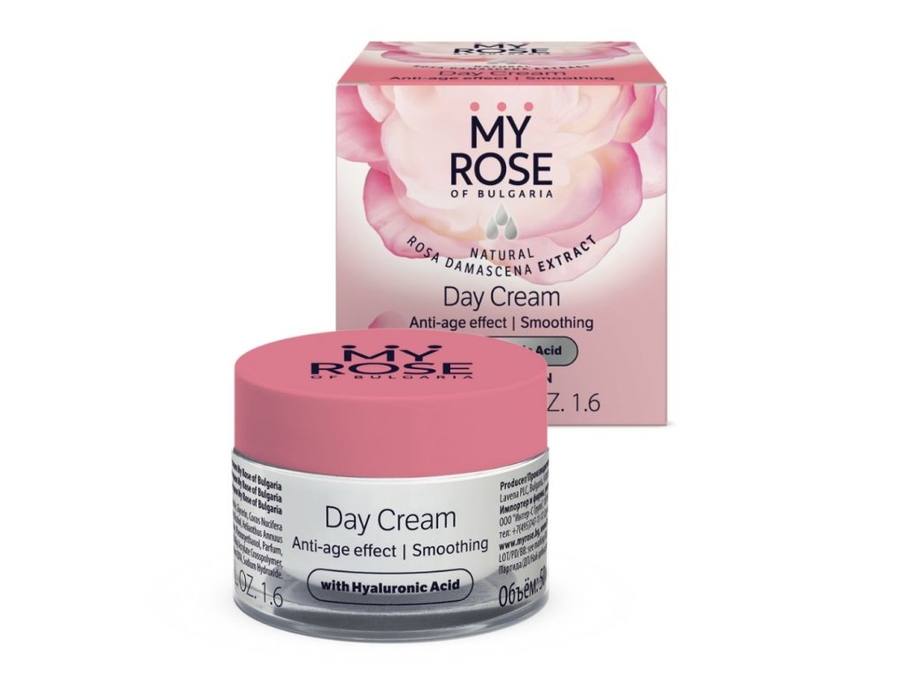 Denní krém My Rose of Bulgaria pro pružnou, jemnou a zářivou pokožku. Poskytuje nezbytnou péči o obličej, vyhlazuje a působí proti stárnutí pleti. Obohacený o kokosový a slunečnicový olej pro přirozenou vlhkost, regeneraci a oživení. Přidaná kyselina hyaluronová vyhlazuje pokožku a stimuluje tvorbu kolagenu a elastinu. Obsahuje přírodní extrakt z bulharské růže damascénské, bohatý na vitamíny, mikroprvky a antioxidanty pro zklidnění a oživení pleti.