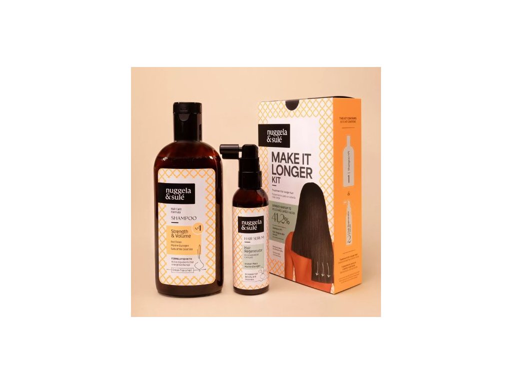 Túžite po krásnych, pevných a zdravých vlasoch, ktoré rastú rýchlejšie a pôsobia objemnejšie? Objavte sadu pre dosiahnutie dlhších a hustejších vlasov od španielskej značky Nuggela & Sulé – prvú vedecky overenú kúru, ktorá dosahuje viditeľné výsledky už po 56 dňoch. Táto profesionálna dvojfázová starostlivosť získala 5 medzinárodných ocenení a jej účinky potvrdzuje nezávislá klinická štúdia.