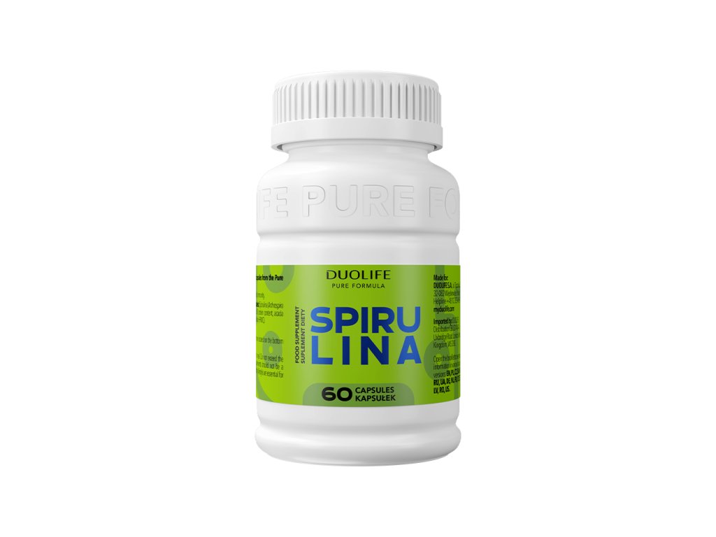 DuoLife Spirulina 60 kapsúl je kvalitný prírodný výživový doplnok vo forme kapsúl, ktorý využíva silu čistej spiruliny (Arthrospira platensis) pre komplexnú podporu imunity, energie a detoxikácie organizmu. Spirulina je známa ako jeden z najbohatších zdrojov rastlinných bielkovín, vitamínov, minerálov a antioxidantov s pozitívnym vplyvom na trávenie, vitalitu aj ochranu pred oxidačným stresom.
