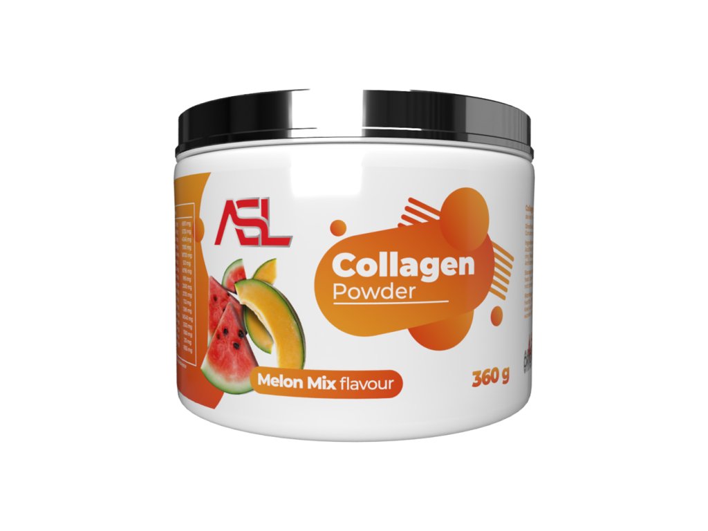 Melónová zmes: hydrolyzovaný kolagén (83 %, potravinársky, bovinný zdroj), maltodextrín, kyselina (kyselina citronová), protihrudkujúca látka (fosforečnan vápenatý), umelá aróma (melón), surován suromerany, kyselofén sodný draslík), protipenivo (e900), vitamín b6 (pyridoxín hydrochlorid).