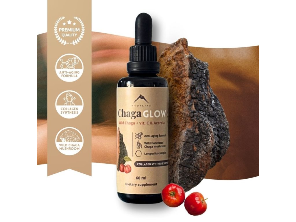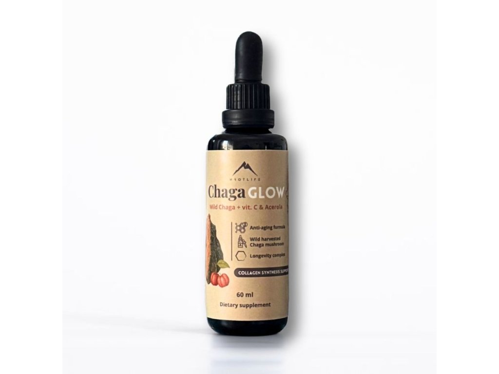ChagaGlow je novinkou z revolučnej generácie tinktúr, ktorá kombinuje hubu Chaga, prírodný vitamín C z brazílskej čerešne Aceroly, aktívnu formu vitamínu B6 a B12 a minerály, aby poskytla komplexnú podporu pre vaše zdravie a zdravý vzhľad pokožky.