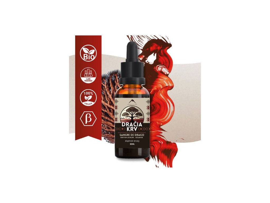 Dračia krv (Sangre de Drago) je vzácna živica zo stromu Croton lechleri, ktorý rastie v amazonských pralesoch. Pôvodní obyvatelia Južnej Ameriky ju považovali za dar prírody a využívali ju ako ochranný štít pre telo zvnútra aj zvonka. Dnes je ceněná pre svoj vysoký obsah bioaktívnych látok, ako sú proantokyanidíny, taspín a flavonoidy, ktoré majú mnohostranné využitie.