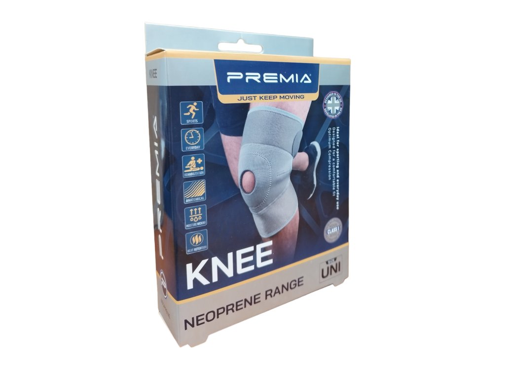 Neoprénová bandáž kolena Premia s patelárnym otvorom kombinuje účinky kompresie, stabilizácie a termoterapie pre pohodlnú podporu pri bežnom pohybe aj športových aktivitách. Otvorený stred bandáže pomáha správne centrovať kolenné jabĺčko a znižovať lokálny tlak, zatiaľ čo neoprén udržiava mierne terapeutické teplo a froté podšívka zvyšuje komfort vďaka absorpcii vlhkosti. Univerzálny strih je vhodný na ľavé aj pravé koleno.