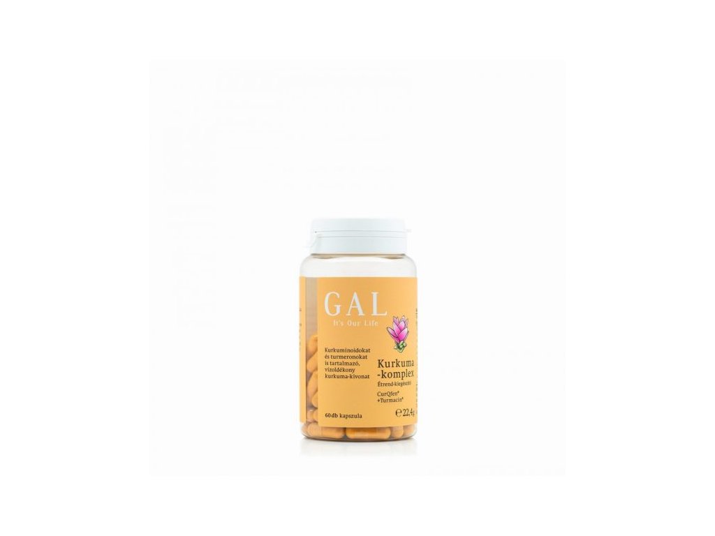 GAL Kurkuma-komplex je kvalitný výživový doplnok s plnospektrálnym kurkumovým komplexom, ktorý spája kurkuminoidy, aromatické turmeróny a kurkuma-polisacharidy v jednej kapsule. Využíva CurQfen® – FenuMAT™ technológiou spracovaný kurkumový extrakt – a Turmacin®, štandardizovaný na turmerosacharidy. Cieľom je poskytnúť lepšiu vstrebateľnosť a dlhšiu dostupnosť kurkuminoidov v organizme v porovnaní s bežnými kurkumovými extraktmi.