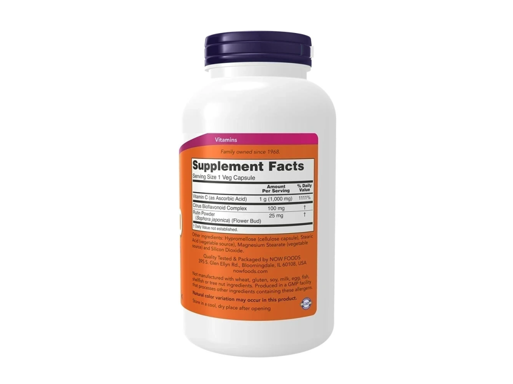 Now Foods Vitamín C 1000 mg kapsuly s bioflavonoidmi – 250 vegánskych kapsúl