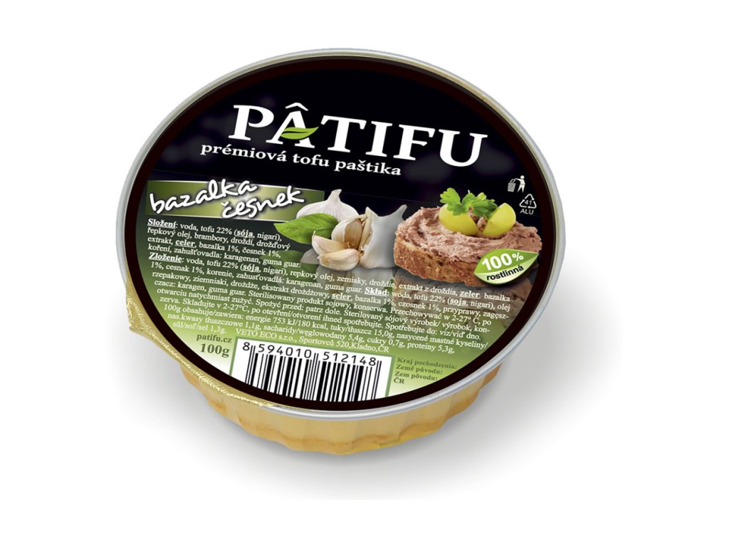 PATIFU Paštéta bazalka a cesnak je jemná tofu paštéta rastlinného pôvodu s výraznou chuťou bazalky a cesnaku, ktorá je ideálnou voľbou pre zdravé raňajky, desiaty alebo večere. Táto paštéta je nielen chutná, ale aj vhodná pre vegánov a vegetariánov, pričom neobsahuje glutamany ani konzervanty.