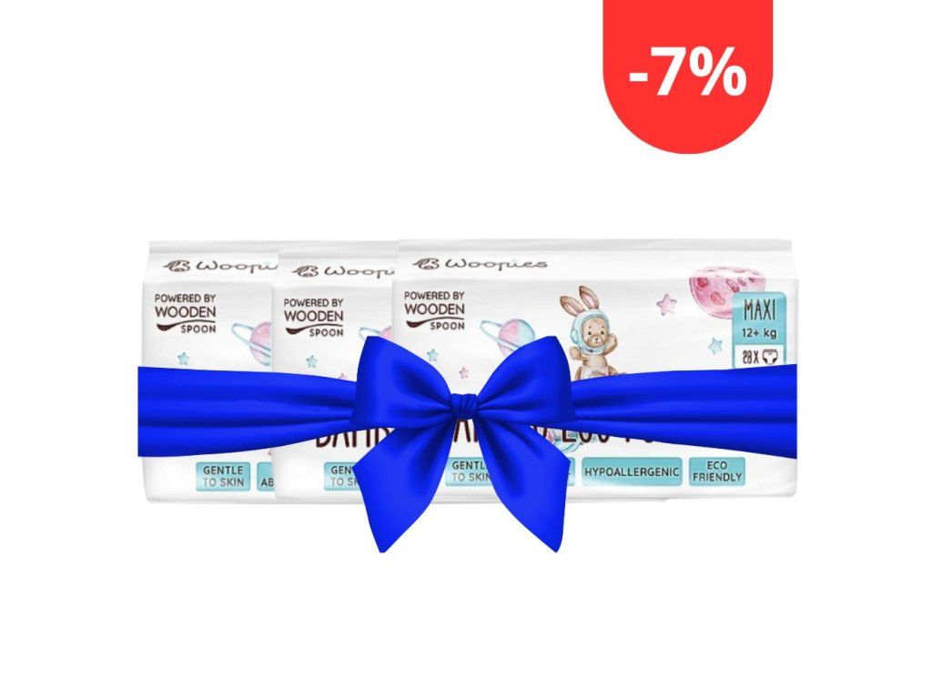 Wooden Spoon je prémiová bulharská značka prírodnej a organickej kozmetiky a eko produktov pre deti a rodinu s certifikáciou COSMOS ORGANIC od Ecocert Greenlife. Woopies EKO plienkové nohavičky Pull-ups MAXI (12+ kg) – XL balenie 3×28 ks (84 ks) sú ekonomické balenie navliekacích plienok novej generácie pre aktívne batoľatá od 12 kg. XL balenie obsahuje 3 samostatné balenia po 28 ks, čo predstavuje celkovo 84 plienok za výrazne výhodnejšiu cenu za kus oproti štandardnému baleniu. Na rozdiel od klasických plienok s prelepovaciymi páskami sa Woopies Pull-ups navliekajú vestoji ako klasické nohavičky – bez potreby ľahnutia na prebaľovací pult. Kombinácia biologicky rozložiteľného bambusového povrchu, drevnej celulózy a superabsorpčného japonského polyméru Sumitomo SAP vytvára plienku mimoriadne jemnú k detskej pokožke, spoľahlivo absorbujúcu vlhkosť až 12 hodín a pritom výrazne menej zaťažujúcu životné prostredie ako bežné jednorazové plienky. Plienky Woopies Pull-ups MAXI XL sú 75 % biologicky rozložiteľné, hypoalergénne, priedušné, vegánske a certifikované COSMOS ORGANIC.