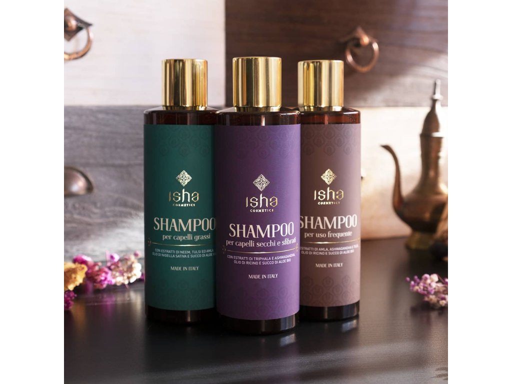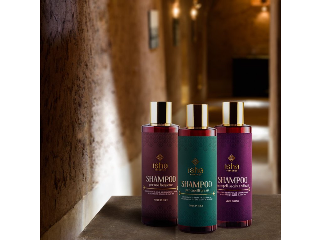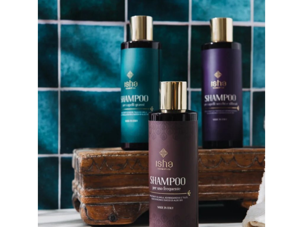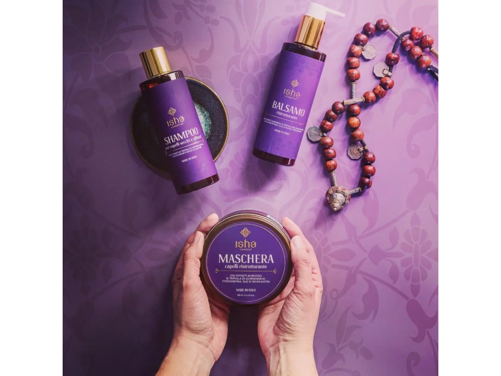 ISHA šampón pre suché a poškodené vlasy obsahuje prírodné povrchovo aktívne látky a je obohatený o ajurvédske extrakty Triphala a Ashwagandha. Triphala sa zrodila z šikovného spojenia troch rastlín Amla, Haritaki a Bibhitaki, ktoré sa pýšia výnimočnými vlastnosťami pre hydratáciu vlasov.
