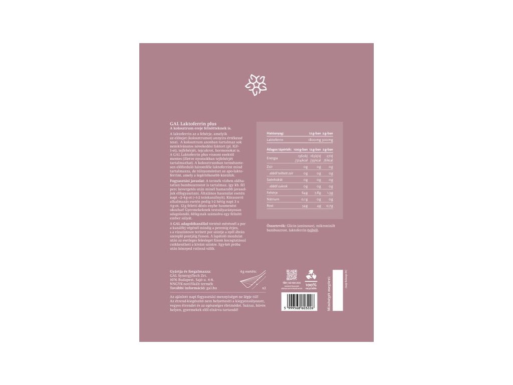 GAL Laktoferrin Plus predstavuje univerzálny doplnok stravy, ktorý v sebe spája silu laktoferínu s pridanými benefitmi pre vaše zdravie. Laktoferín, známy svojimi imunostimulačnými vlastnosťami, je doplnený o glycín a mikronizované bambusové vlákno, čím vytvára produkt, ktorý je nielen účinný, ale aj príjemný na konzumáciu.