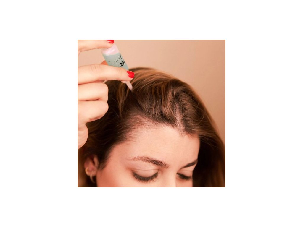 Pri prvom použití ampulky stlačte uzáver, aby ste prepichli trysku. Po otvorení („kliknutie“) odstráňte uzáver jeho potiahnutím. Pomocou dávkovača naneste 6-8 paralelných línií od čela k zátylku. Jemne masírujte končekmi prstov 2 minúty. Učešte si vlasy ako obvykle. Neoplachujte a nechajte pôsobiť cez noc.
