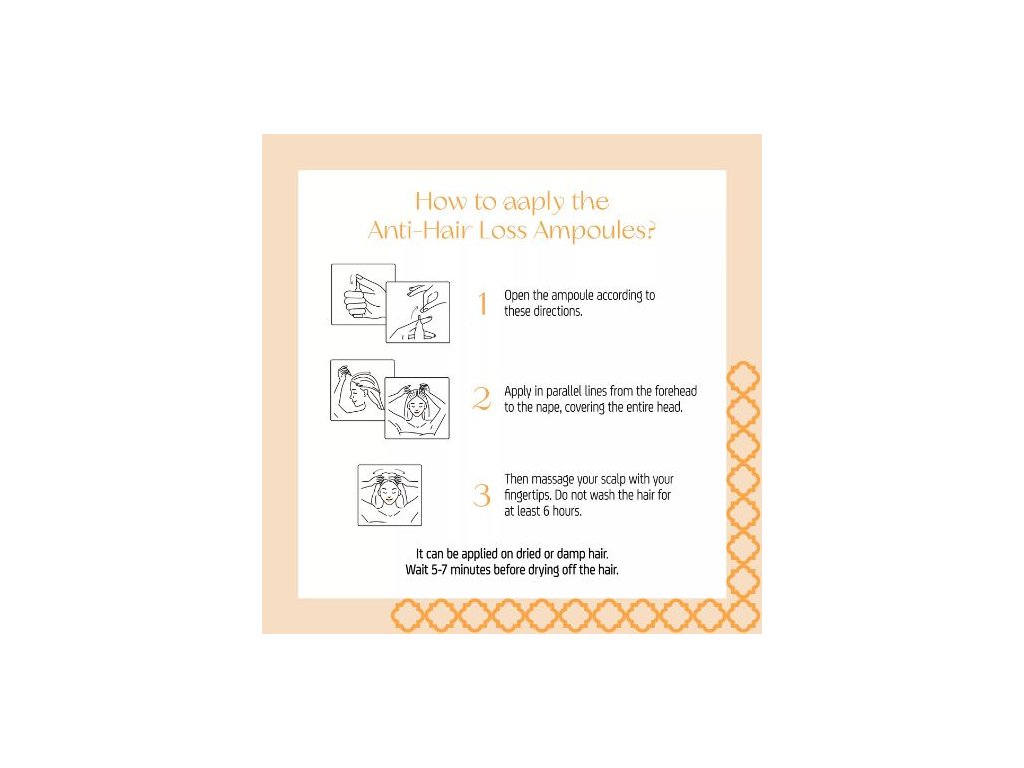 Každá ampulka obsahuje dostatok produktu na tri dávky. Aplikujte jednu ampulku týždenne, rozdelenú do troch aplikácií (napríklad: pondelok, streda, piatok). Kúru sa odporúča dodržiavať minimálne dva mesiace (8 ampuliek). Odporúča sa aplikovať ampulky večer pred spaním, na čistú pokožku hlavy a najlepšie po umytí, aby sa zlepšil prienik účinných látok. Možno ich aplikovať aj počas dňa.