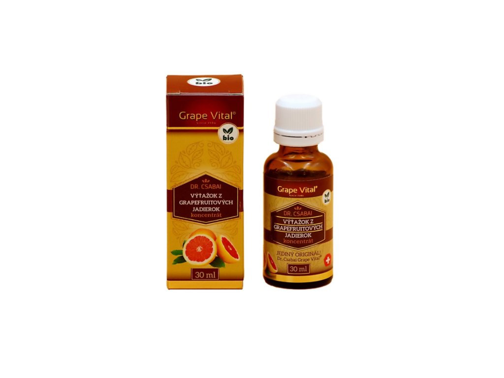 Výživový doplnok - výťažok z grapefruitových jadier, so širokým spektrom účinnosti. Grapefruitové jadierka môžu prispieť k posilneniu imunitného systému. prírodný prostriedok bez konzervantov pôsobí protizápalovo má antibakteriálne, protiplesňové a dezinfekčné účinky účinný na kožné problémy prírodné antiseptikum a antibiotikum podporuje vstrebávanie železa, zvyšuje účinok vitamínu C.